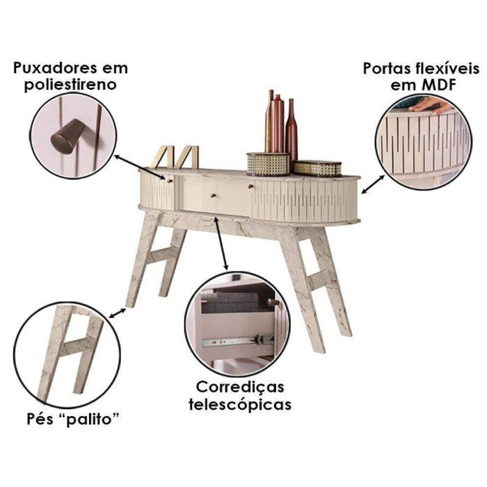 - Tampo e Base com Laterais com Design Curvo, que Acompanham 2 Portas Deliszantes Flexíveis de MDF