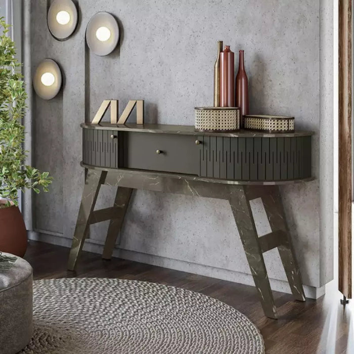 - Tampo e Base com Laterais com Design Curvo, que Acompanham 2 Portas Deslizantes Flexíveis de MDF