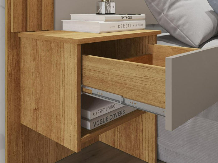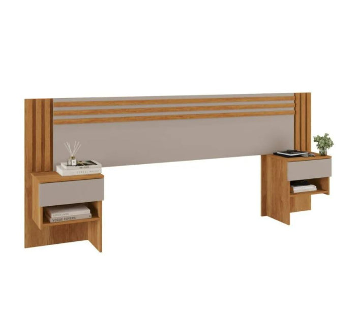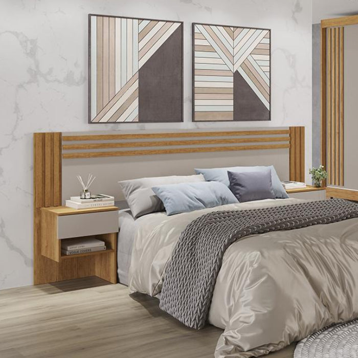 Cabeceira Box Jade Casal + 2 Mesas de Cabeceira - Cinamomo/Off White EN