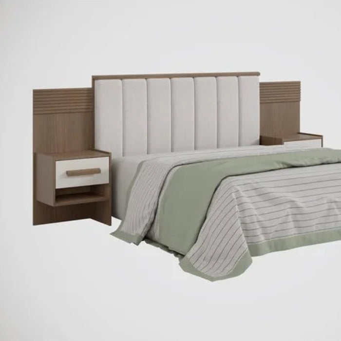 Cabeceira Casal Iris CastanhoOff/White com Detalhe Ripado EN
