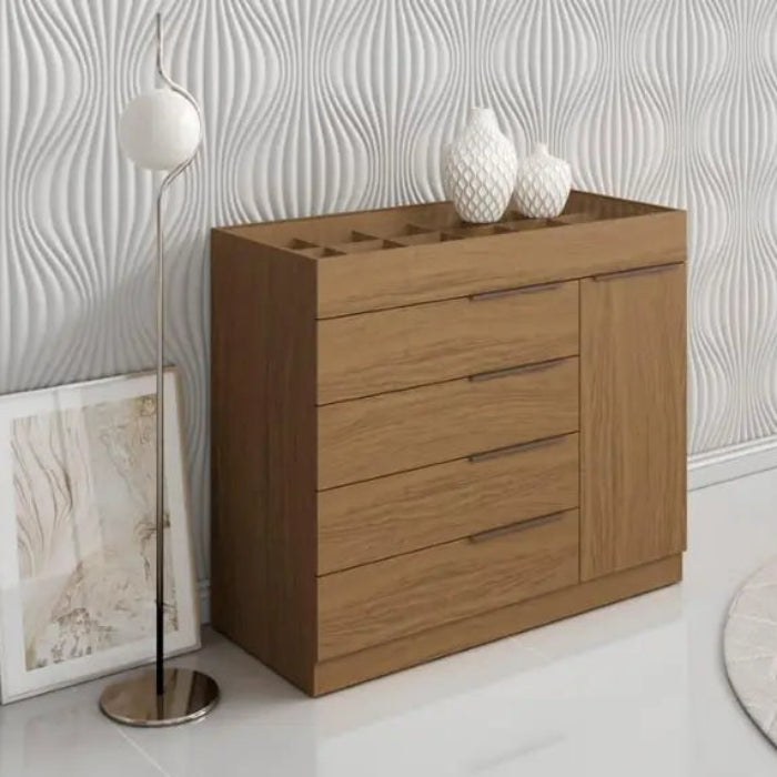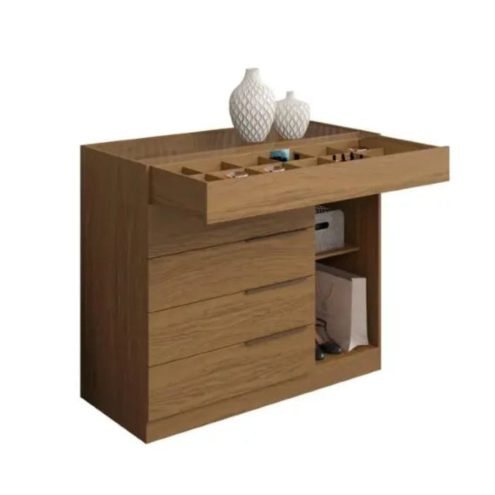 - 5 Gavetas com Corrediças Metálicas, sendo a 1 ª Gaveta com Escaninhos para Jóias