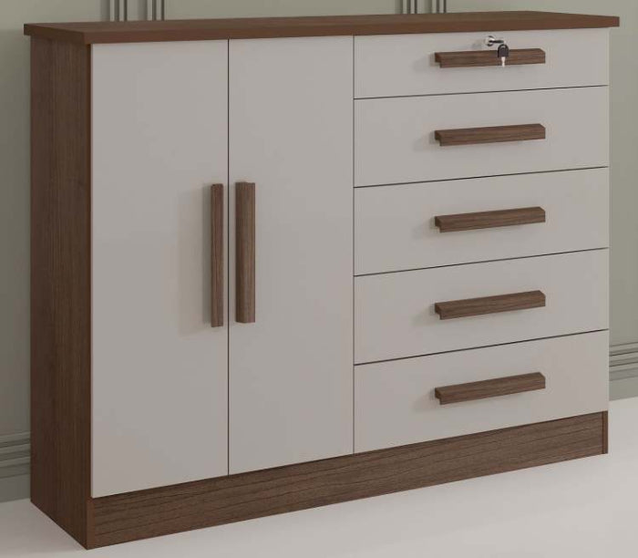 - 5 Gavetas com Corrediças Telescópicas, com Abertura Total de 40cm, sendo uma Gaveta com Chaves,