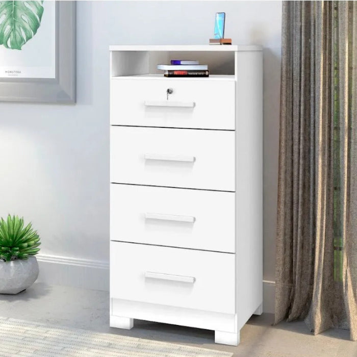 - 4 Gavetas com Corrediças Metálicas, sendo a 1ª com Divisórias e Chaves, todas com Suporte para até 3Kg,