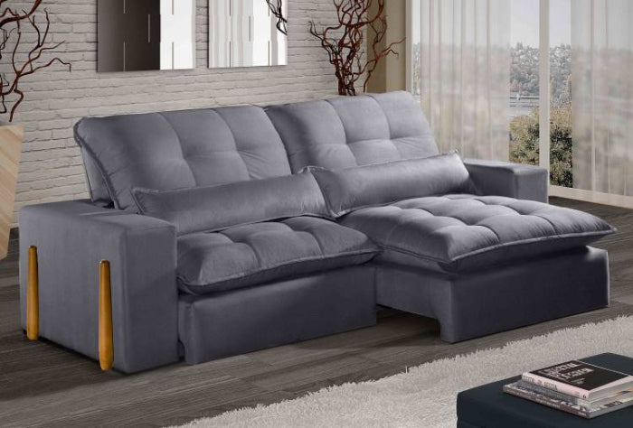 Estofado Retratil Reclinavel Itaoca.Fitipaldi 230 Veludo Inca Grafite EN