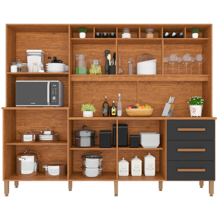 - 6 Nichos Inferiores Fechados Divididos por 2 Prateleiras para Guardar Louças