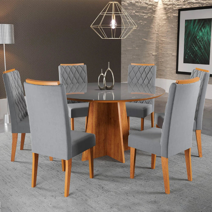 Mel Blonde/Grafite - Mel Blonde/Vel Grafite C/ 6 Cadeiras EN