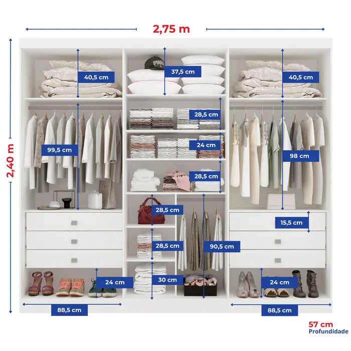 Roupeiro Da Vinci 100% MDF - 6 Portas - 2,75 cm - Branco L