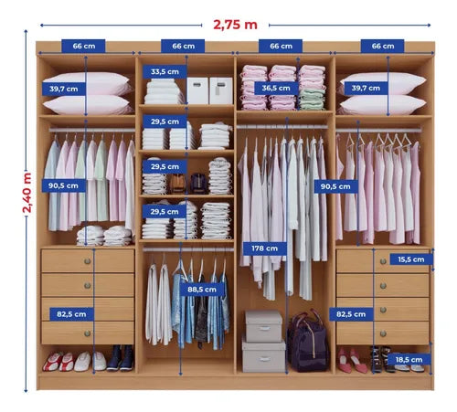 Roupeiro Dyamond 100% MDF - 8 Portas - 2,75 cm - Cinamomo/Off White L