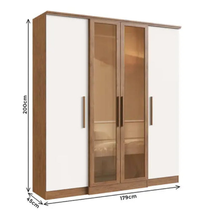 Roupeiro Genebra, sendo 2 Portas com Vidro Reflecta Off White.Nogueira EN