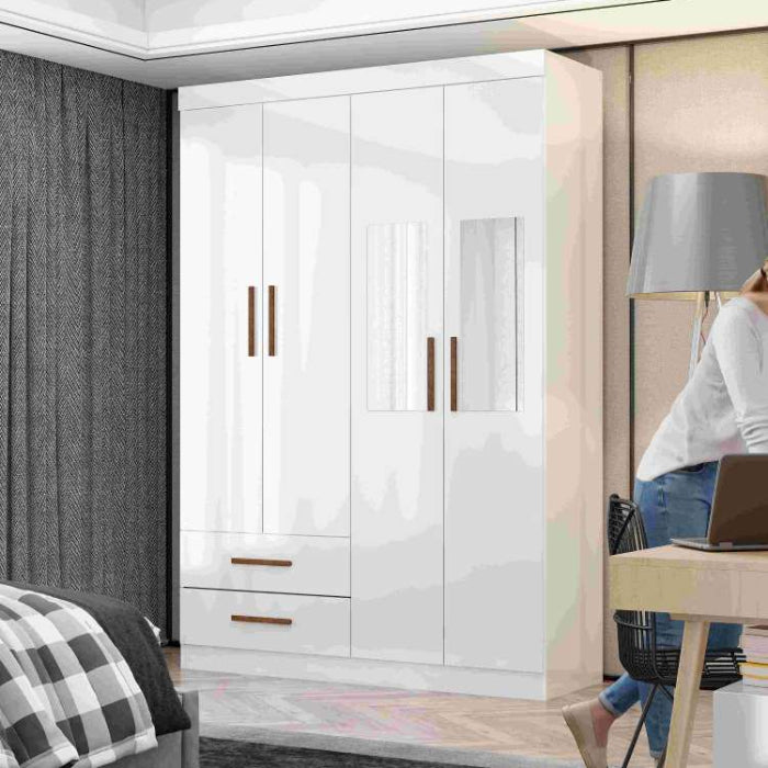 Roupeiro Hercules Gold 4P2G com 2 Espelhos Branco.Branco EN