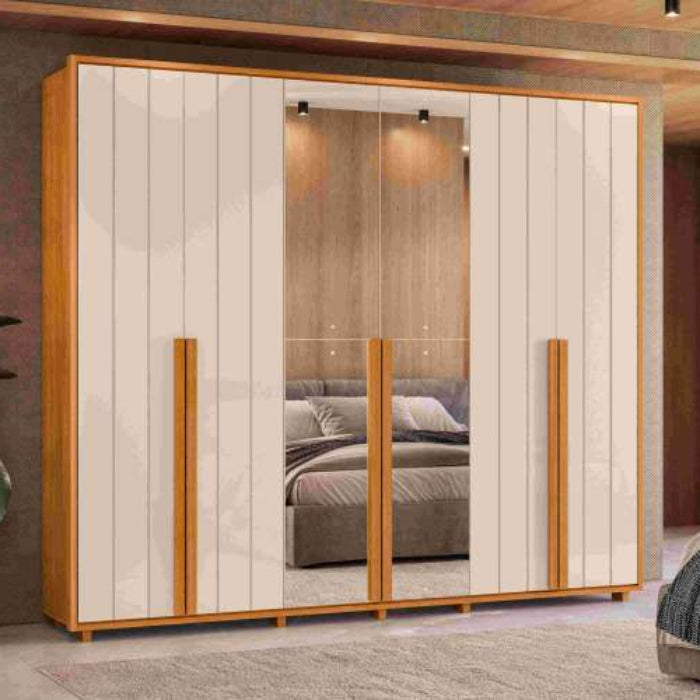 Roupeiro Volpi 6P6G com 2 Espelhos Cinamomo.Off White EN